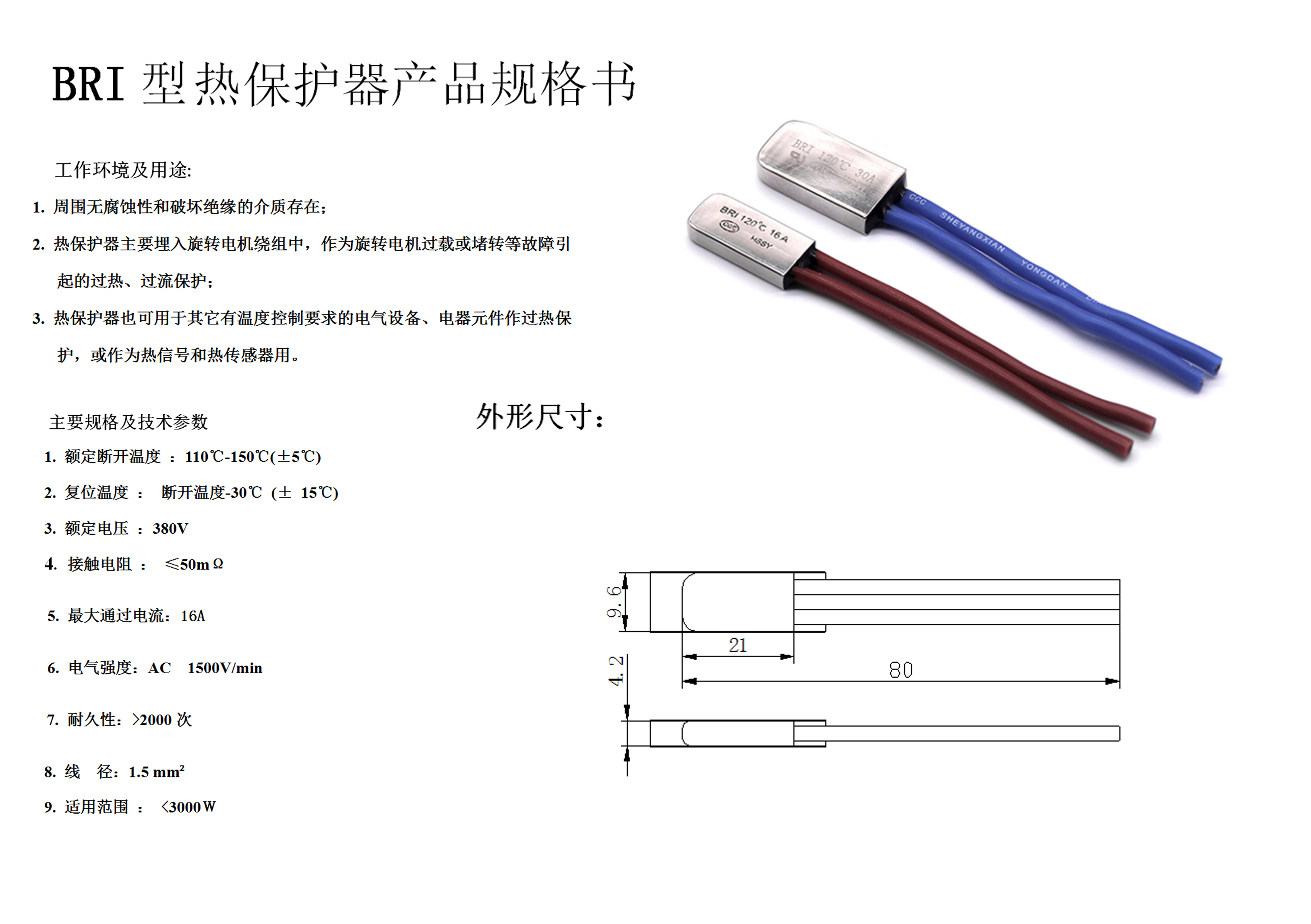 | 型号: | BRI型热保护器/温度开关 | 通过电流: | 16A |
