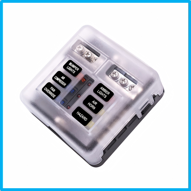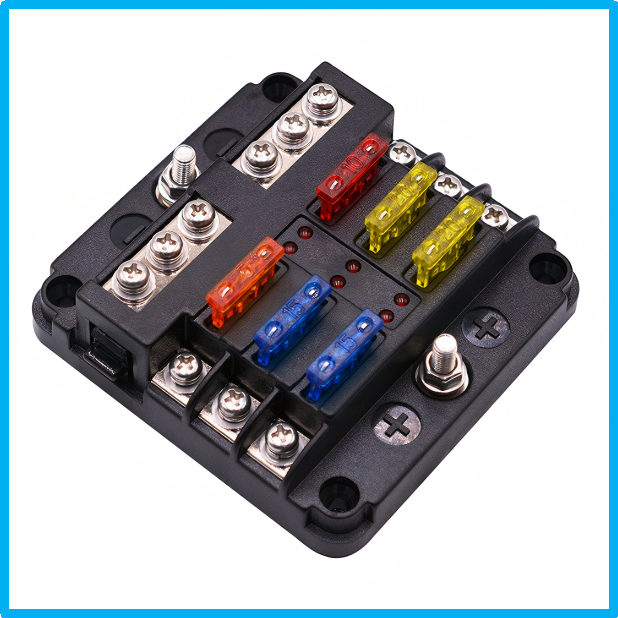 产品名称:独立正负极1进6出保险丝盒带LED指示灯