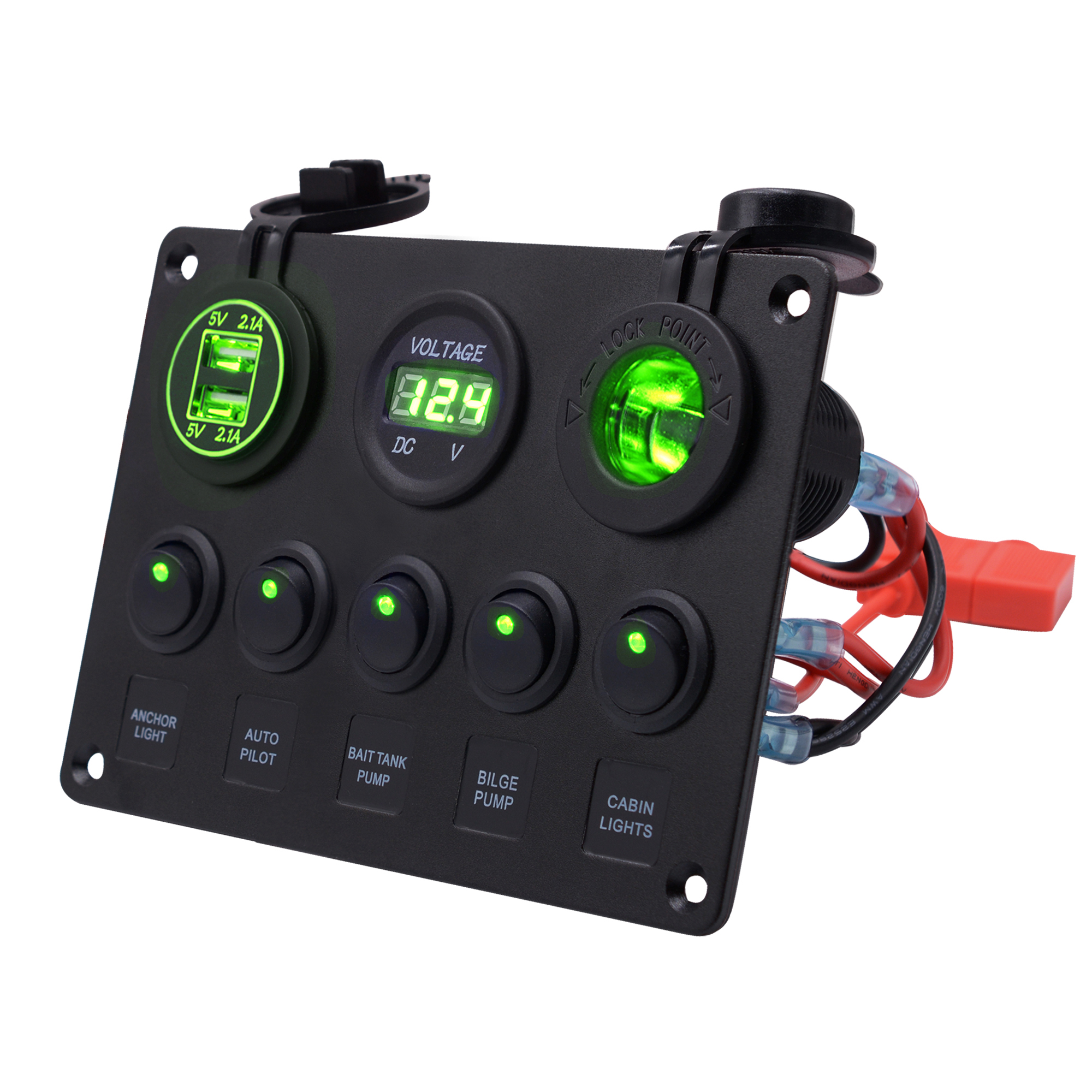 圆形带灯开关+点烟器座+双USB+电压表组合面板