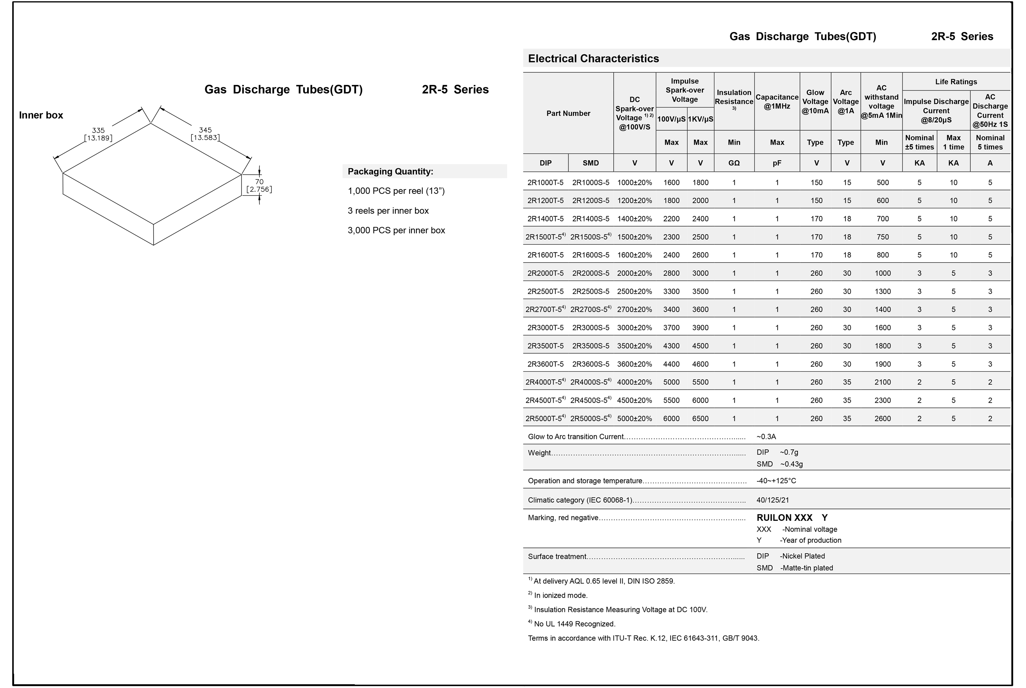 8/20μ脉冲电流容量:5KA/3KA/2KA,非放射性