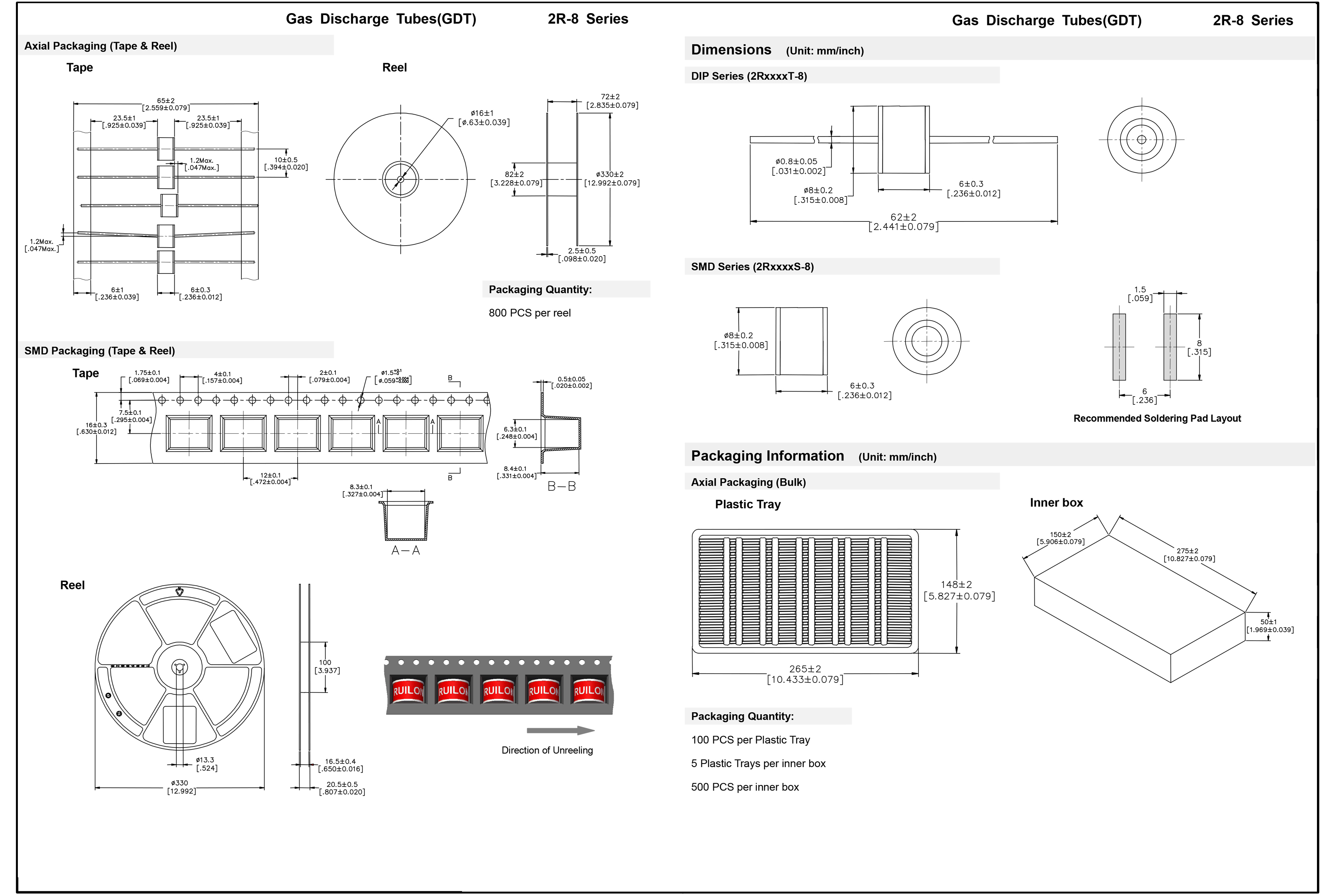 8/20μ脉冲电流容量:10KV/5KA/3KA,非放射性,超低电容(<1.5pF)