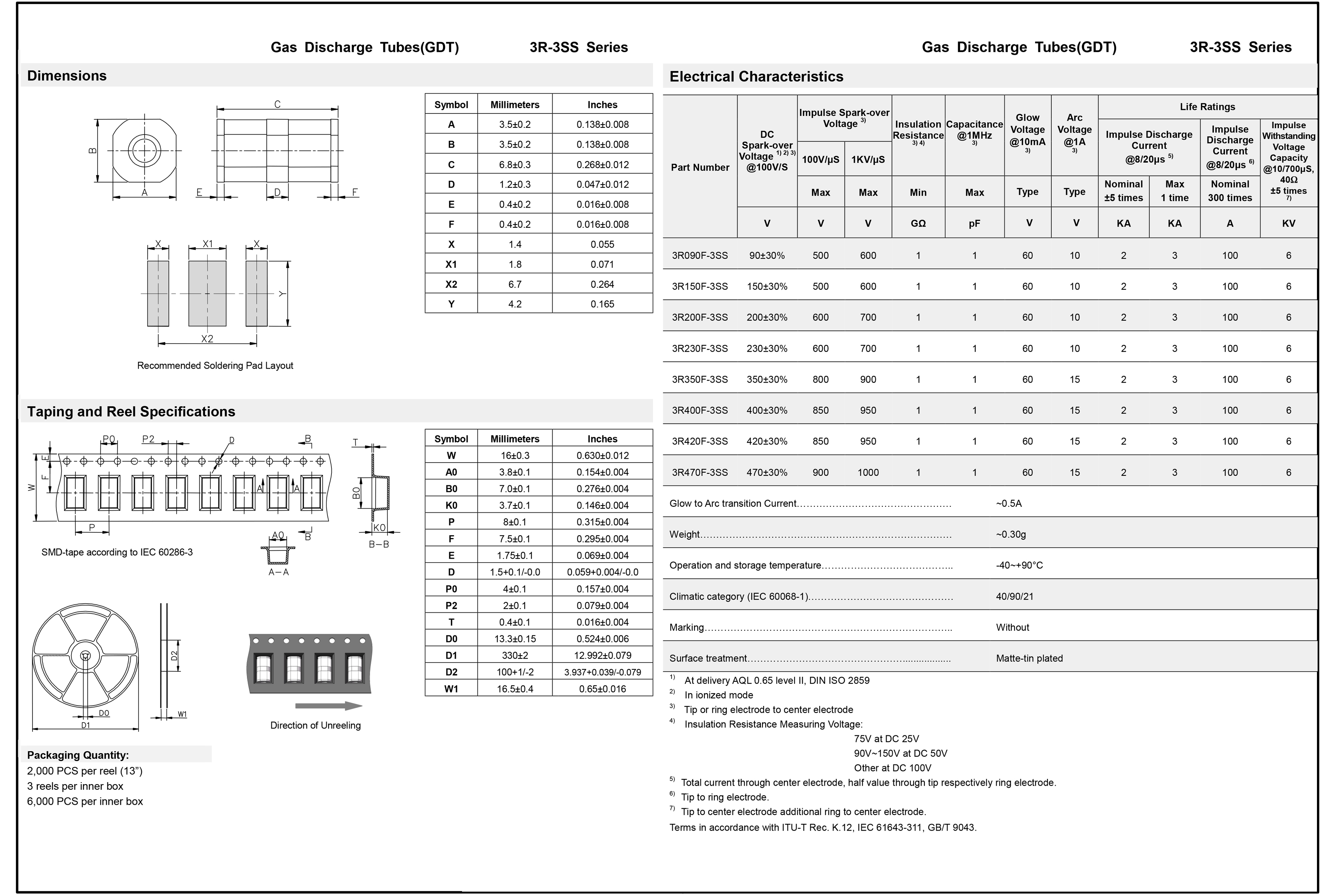 稳定击穿电压,8/20μ脉冲电流容量:2KA