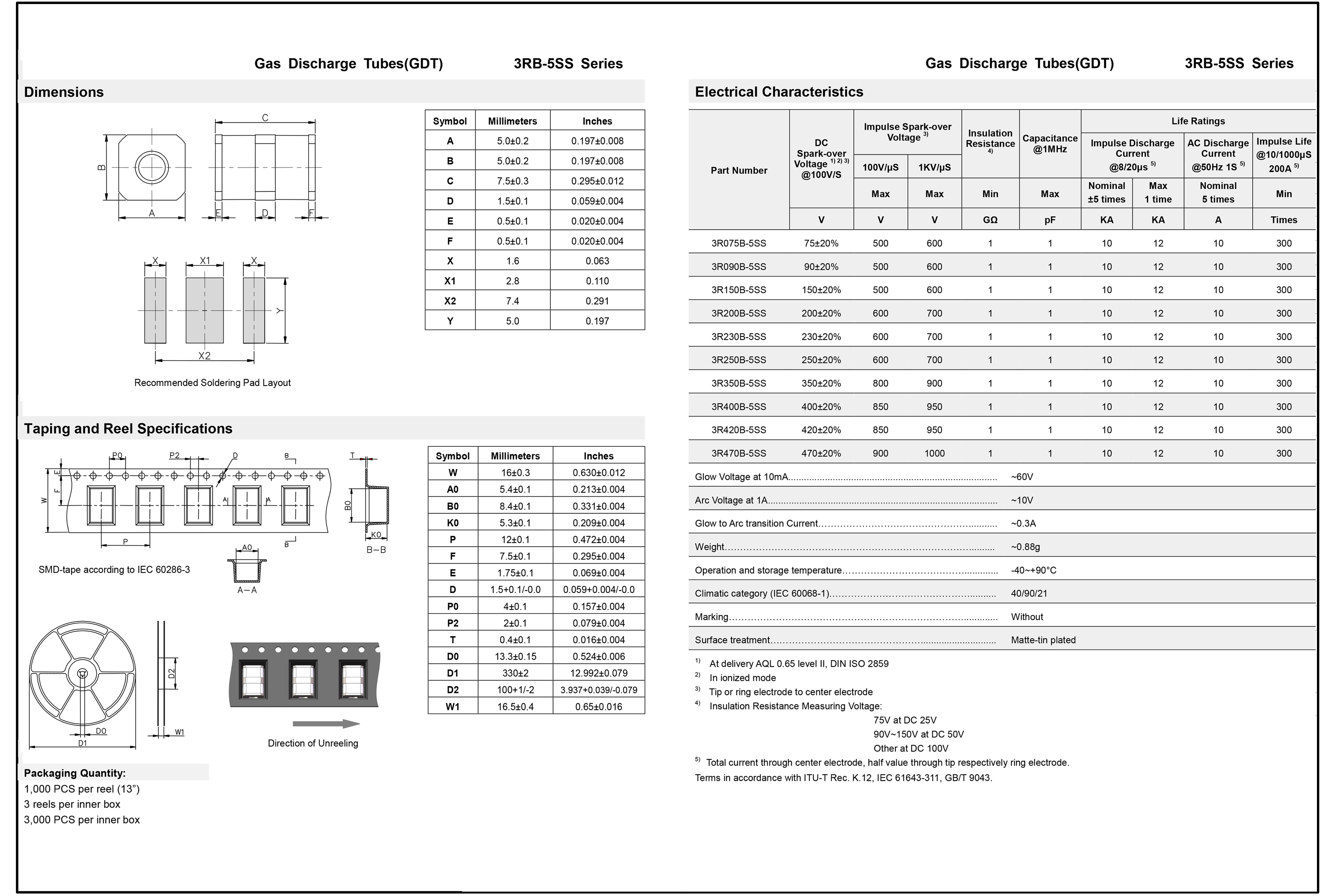 3RB-5SS 三极气体放电管