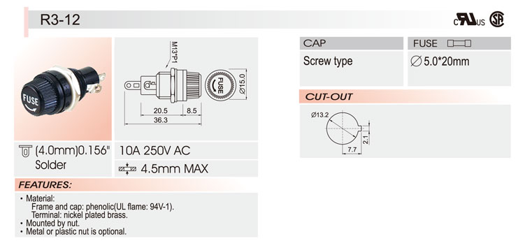 关键词:R3-12面板安装保险丝座