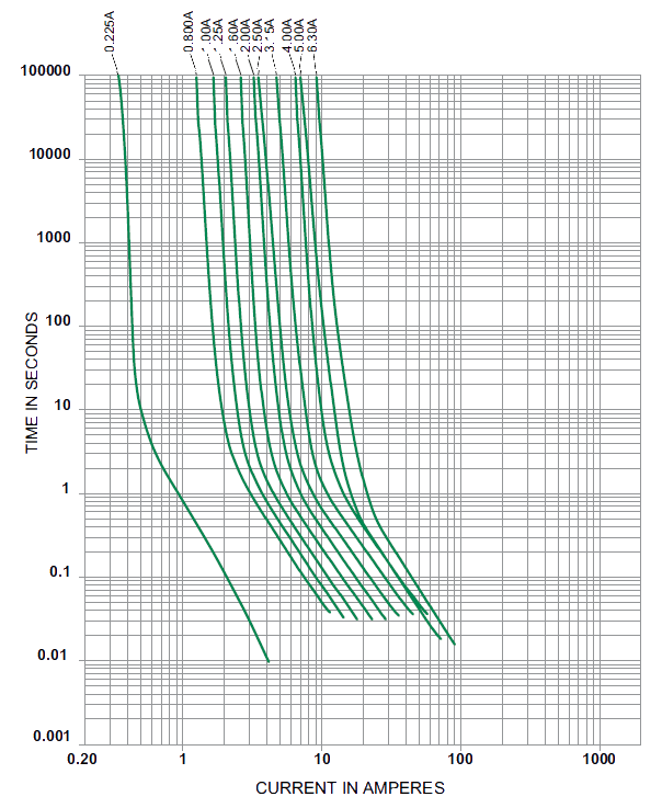 TE5, time-Lag type, 250V rated, designed in accordance to IEC 60127-3.
