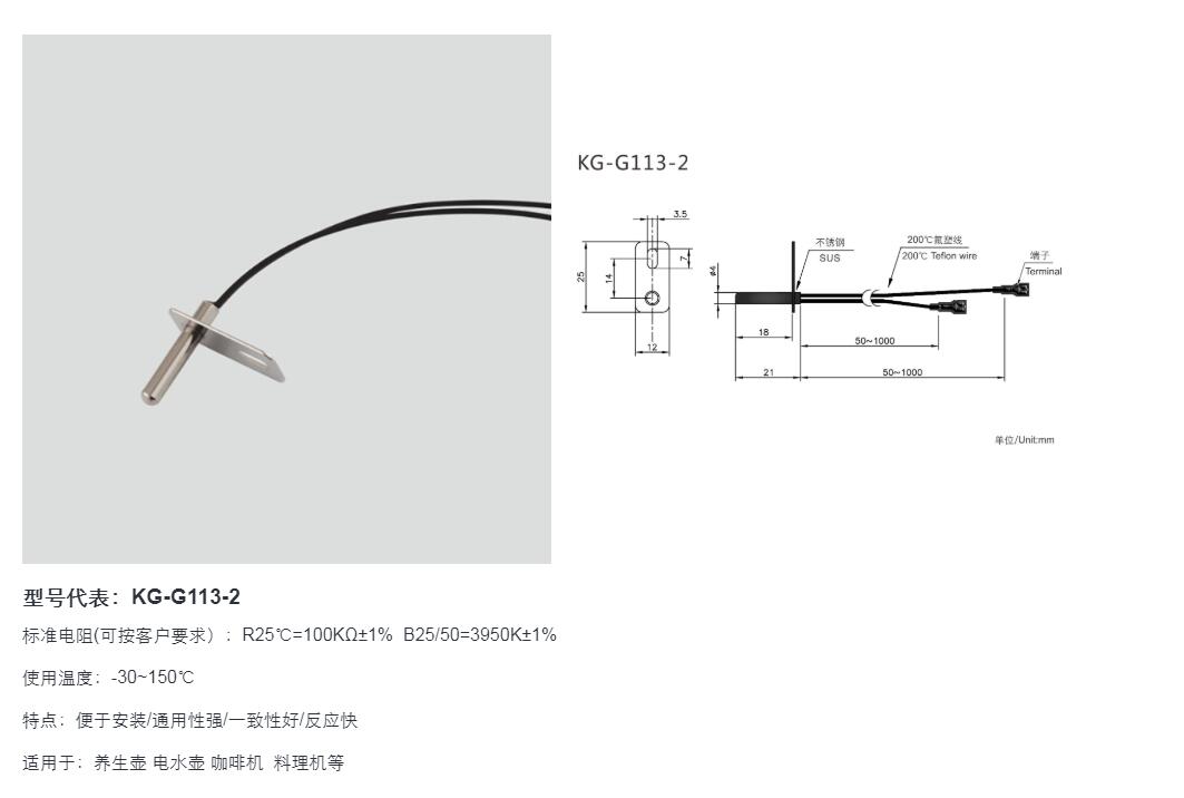 T型NTC温度传感器 KG-G113-2