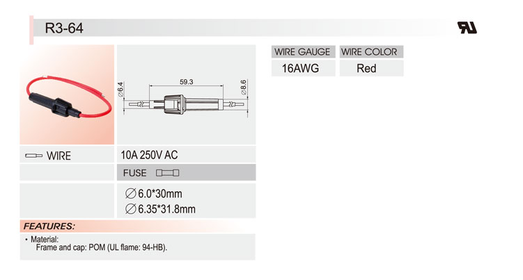 本体和盖帽 Body and Cap: POM(UL flame: 94-HB)